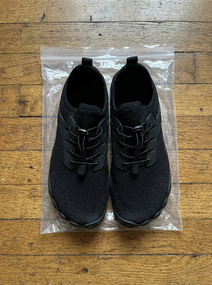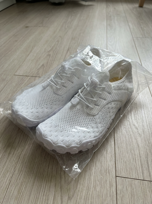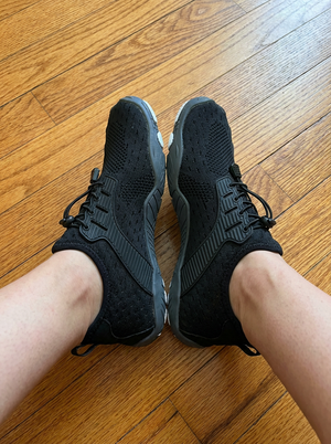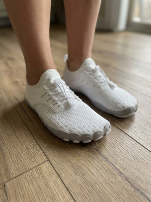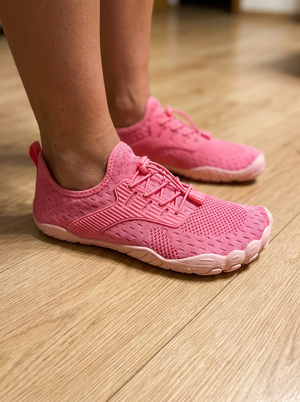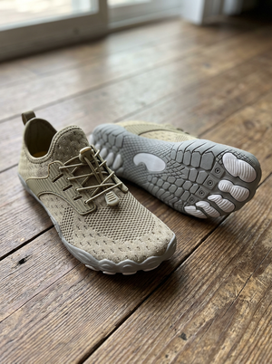 Tapered toe boxes cause bunions. Elevated heels force injury-prone heel strikes. Heavy cushioning increases impact — the opposite of what it promises. These do the opposite. Wide toe box. Zero-drop alignment. Thin flexible sole that strengthens your feet with every step.